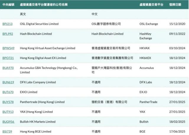 |在香港持牌的虚拟资产交易平台。来源:SFC