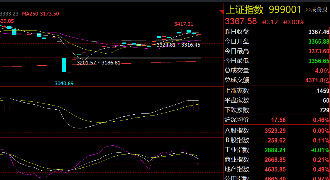 综上所述,今天A股向上突破的可能性较大,沪指上攻时注意3403和3418压力,下探时注意3348和3358支撑。