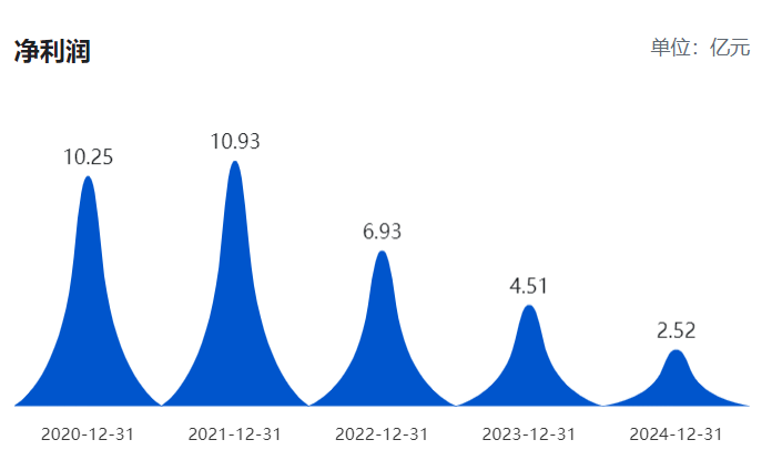 巨潮资讯数据显示,在2021年净利达到近11亿元的阶段高点后,公司净利连续3年均呈阶梯式下滑状态。